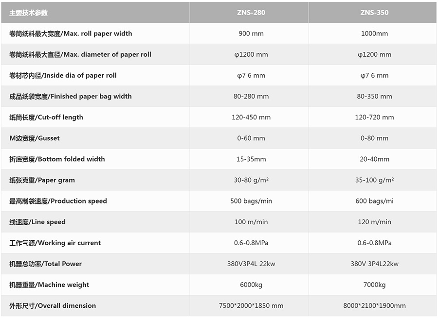 主要生产带M边的大尺寸规格尖底纸袋,广泛适用于薯条、面包等食品的包装。该机采用欧洲技术,对纸张进行预刺孔,在成筒后进行打断,生产性能稳定高效,且袋口平整美观,同时也能适用于更大范围的纸张克重。