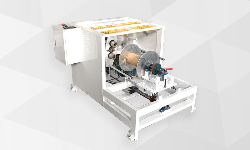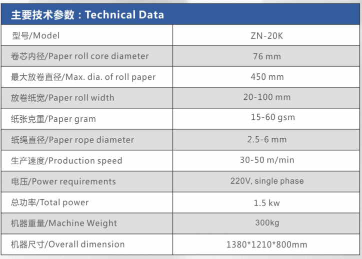 该设备主要用于高速制作圆型的纸绳,纸绳制作设备是手提纸袋机配套的辅助设备, 设备的主要功能是根据需要将分切好的条状原纸进料旋绕后制成所需直径的圆型纸绳,同时可将制作好的圆型纸绳复收成整卷。
